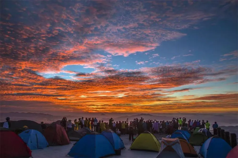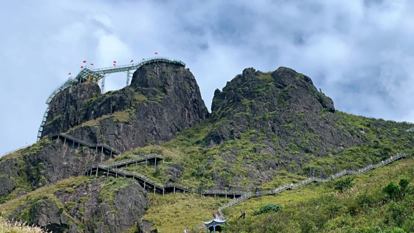 挑战80度坡度的悬崖天梯,手扶栏杆一步一叩首向上攀登;体验海拔1417米上的玻璃系列产品,在云雾缭绕中感受“天上行走”的刺激;若运气好,还能欣赏到伸手可及的云海奇观。